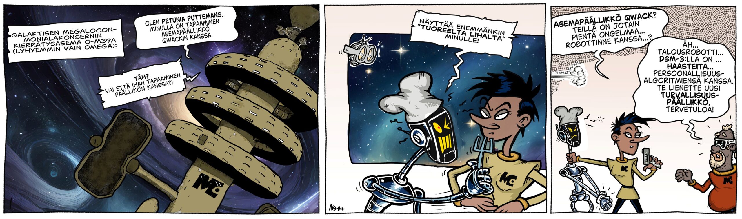 Posted in Kierrätysasema 0mega, Sarjakuvat, StripitTagged Fenz, Kyylä, Petunia, Qwack